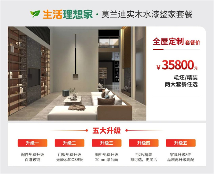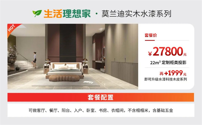 本次活動以“生活理想家”為主題,為大家?guī)砟m迪水漆實木套餐,其“顏值、品味、環(huán)保”的特性,讓它的競爭力不容小覷,也正搶占著高端全屋定制的賽道。