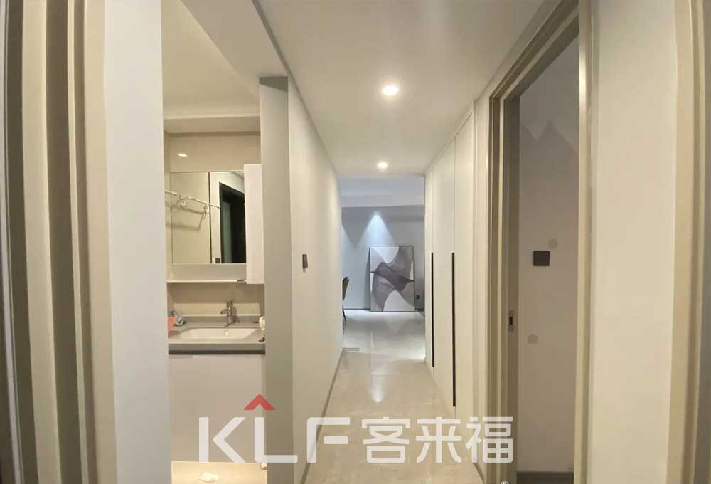 客廳通道臥室的過道很寬,所以設(shè)計出一款嵌入式的柜子,不僅不占用空間,還留出很大的空間收納衣物,相當(dāng)于一個小型的儲物間。乳白色的柜體不會突兀,到頂?shù)囊鹿耖T板采用了拉直器固定,即是再高門板也不會變形彎曲。