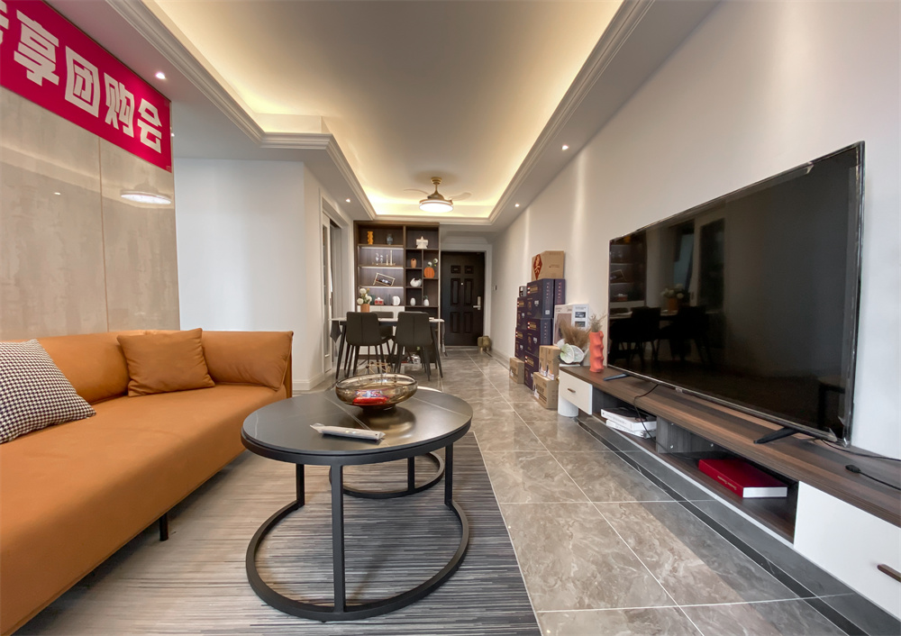 客廳的整體顏色呈中性暖色調(diào),即便是簡單的裝修中也能透露出家的溫暖。因為客廳的整體氛圍偏向于安靜沉穩(wěn),所以精心選擇的橙色沙發(fā),于色彩上增加跳脫感,造型簡潔,線條流暢的家具組合搭配,營造出穩(wěn)定、協(xié)調(diào)、溫馨的空間感受,滿足現(xiàn)代年輕家庭的輕奢需求。
