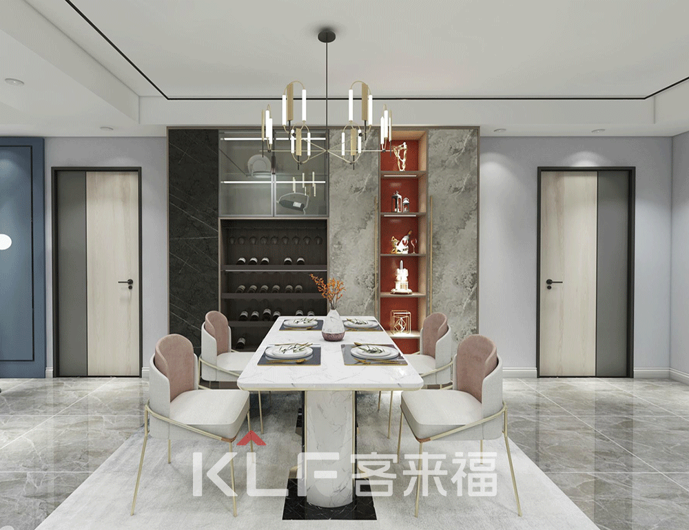 考慮到男主人藏酒的習(xí)慣,我們在餐廳邊融入餐邊柜,充分利用墻面空間,讓收納簡潔更輕松,開放式柜體設(shè)計也讓酒成為生活中的藝術(shù)品。