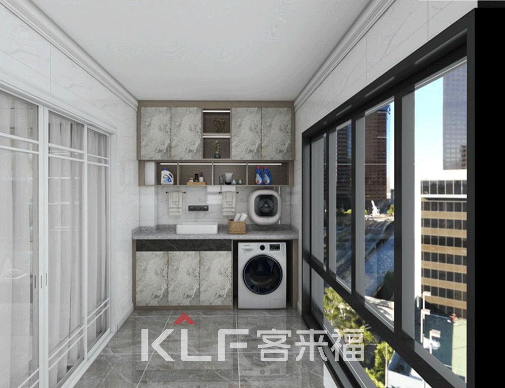 我們摒棄了陽臺空間的雜亂風(fēng)格,左右兩側(cè)各打造了一個陽臺柜,將洗衣機(jī)等物品與陽臺柜組合,節(jié)省了空間,讓陽臺看起來更加干凈整潔,洗衣曬衣也更為方便,營造舒適養(yǎng)眼的色調(diào)和平和舒適的視覺氛圍。