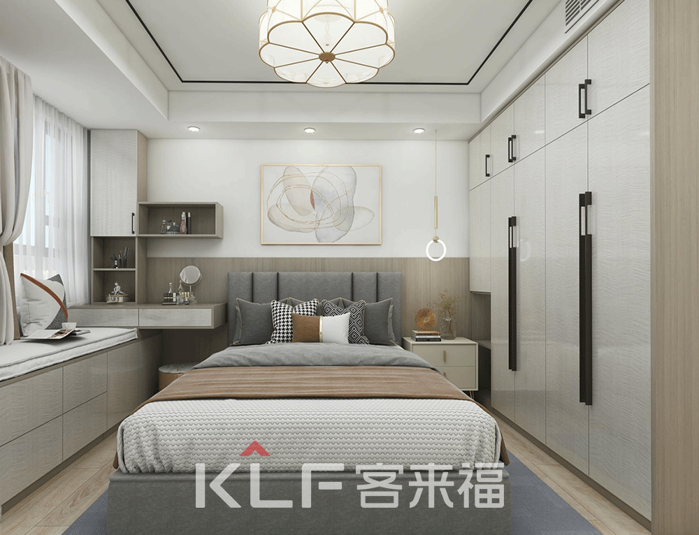 走進廚房整齊劃一的上下櫥柜,映入眼簾,更多的收納,讓廚房內(nèi)的鍋碗瓢盆都有了自己的歸屬。轉(zhuǎn)身來到臥室,由于空間的不足,我們巧妙的將一部分飄窗延伸為梳妝臺,增加空間感的同時,還可以節(jié)省空間。