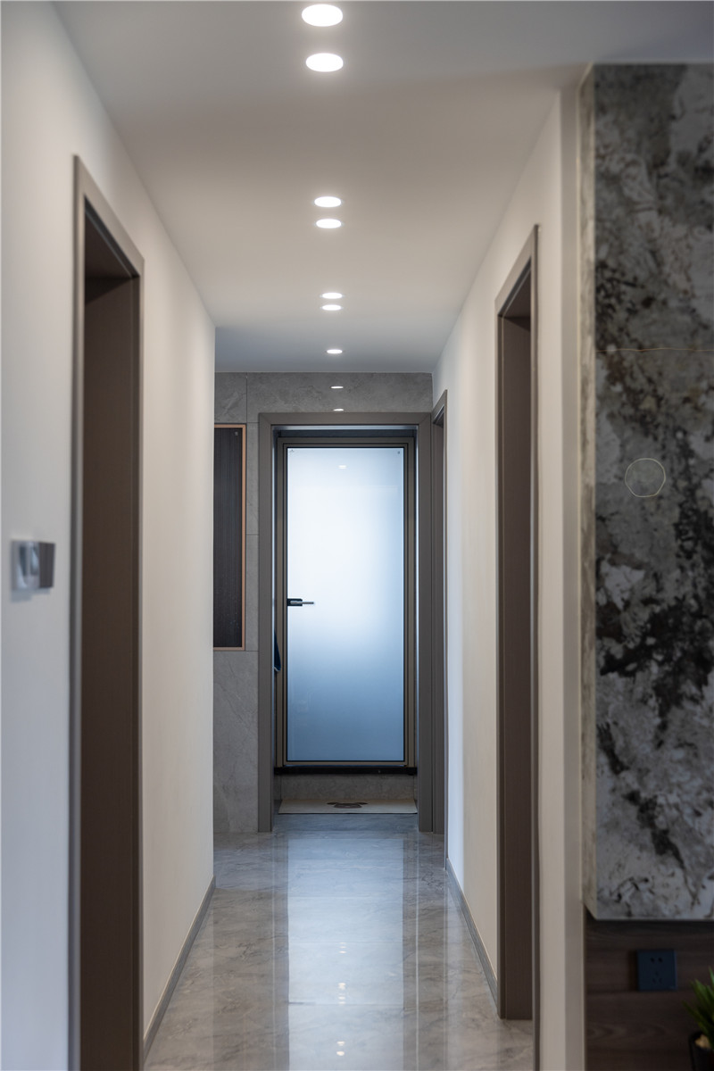 在這戶案例中,收納需求和居住的舒適性是屋主所追求的。所以在陽臺空間上,屋主與設(shè)計師也通過兩組柜子讓家變得更干凈。一側(cè)做家政柜嵌入洗烘家電,到頂高柜內(nèi)部分區(qū)合理,很實用。