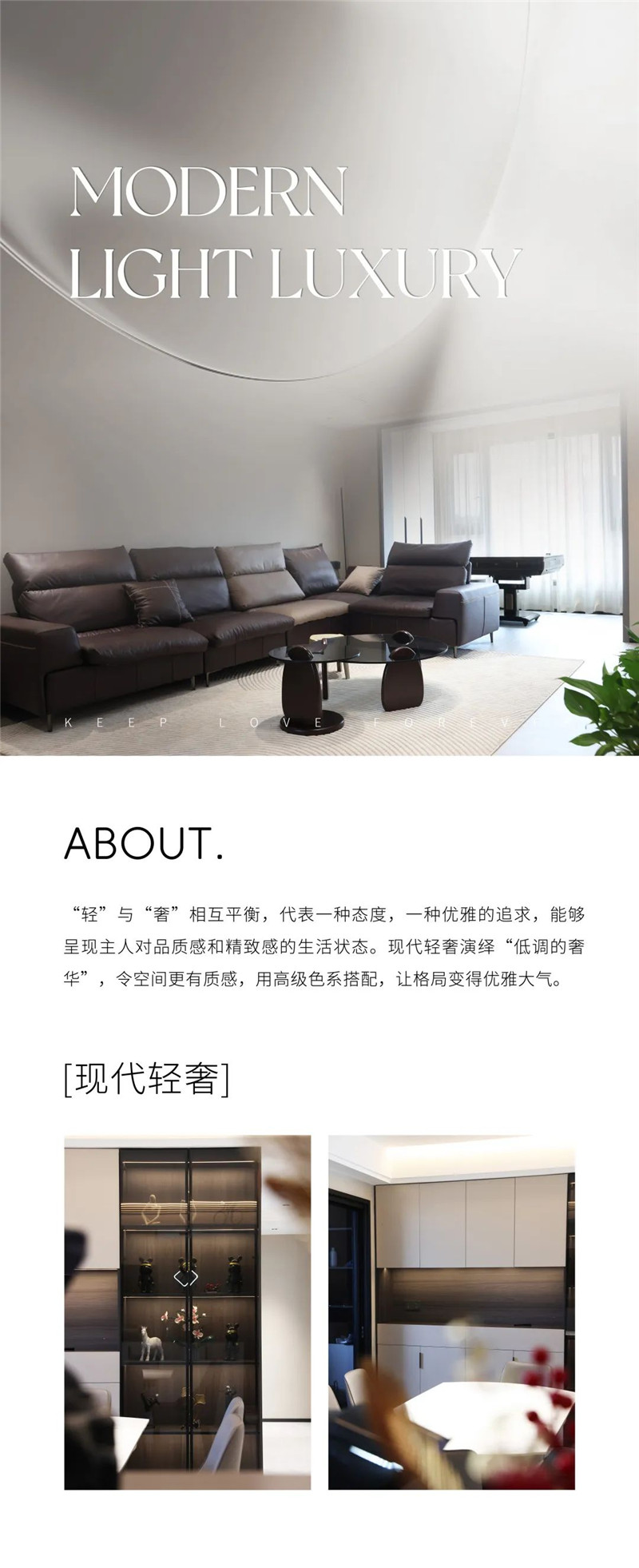 該全屋案例設(shè)計(jì),風(fēng)格隸屬于現(xiàn)代輕奢,充分發(fā)揮客廳“門面擔(dān)當(dāng)”地位,呈現(xiàn)高級、大氣客廳,但在臥室、廚房等空間更注重實(shí)用功能,體現(xiàn)出實(shí)用主義者與顏值至上的平衡。
