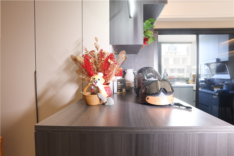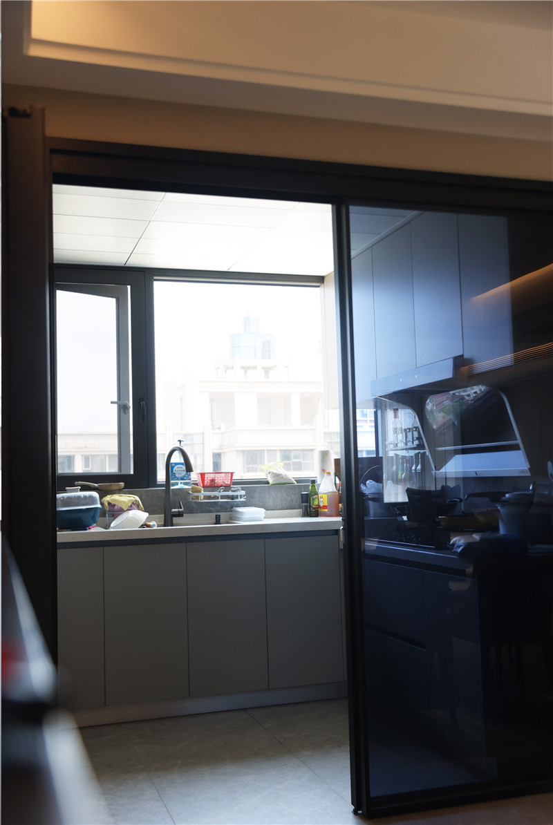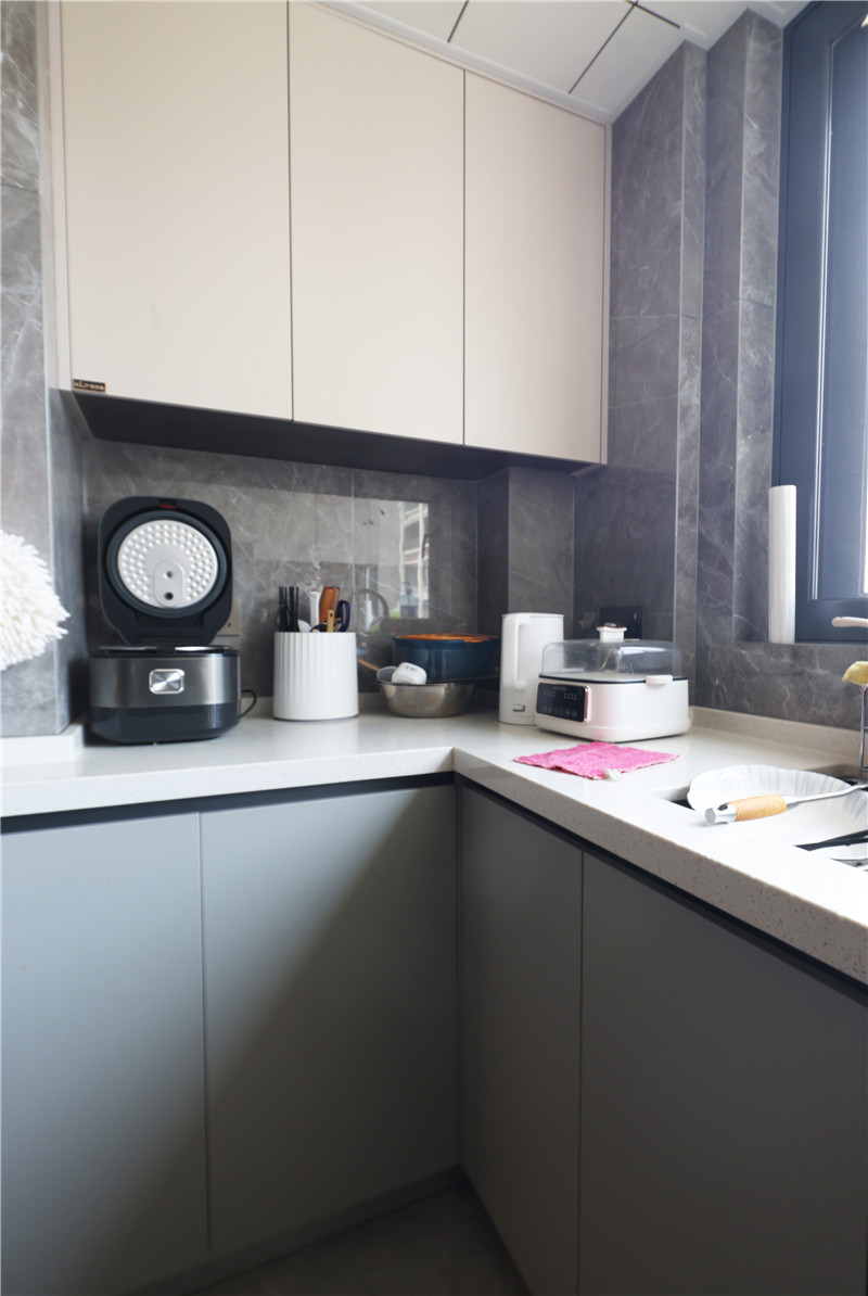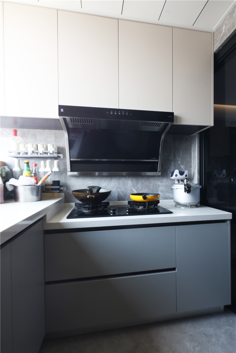 無拉手設(shè)計(jì)、高低臺面、擋水條等,該廚房設(shè)計(jì)遵從著實(shí)用、簡潔理念,打造幸福美好生活。