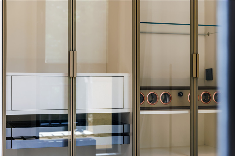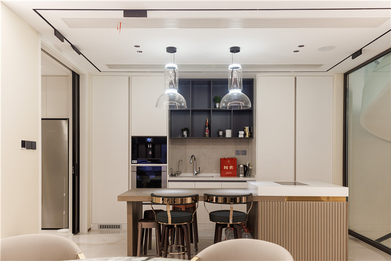 整體空間因為家居的設(shè)計而進行功能上的分區(qū),區(qū)而不隔,更滿足了門墻柜一體化定制的空間連貫感,具有整體性的美。