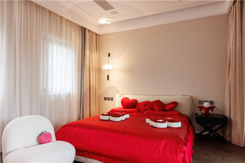頂層沒有束縛,伸手就能感受到風(fēng)的自由。一間主臥用于屋主的日常居住,一間次臥用來當(dāng)做客房。整體的設(shè)計都圍繞舒適展開,設(shè)計師對家居色彩、燈光搭配上的考究,才能讓房子承載生活的意義,變成美好的家。