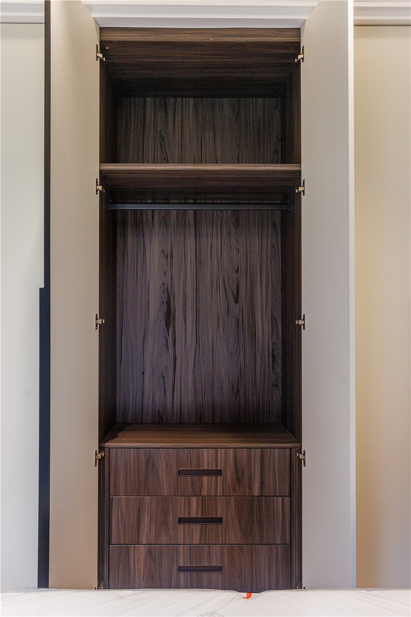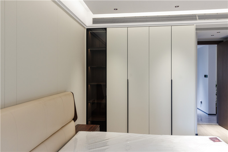主臥和次臥的空間布局沒有太大差別,一柜到頂?shù)姆姨m白色系衣柜能夠打造清新的簡(jiǎn)約風(fēng),內(nèi)部做抽屜分區(qū)收納或是做掛衣區(qū)都兼顧了實(shí)用主義。