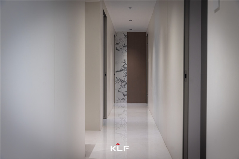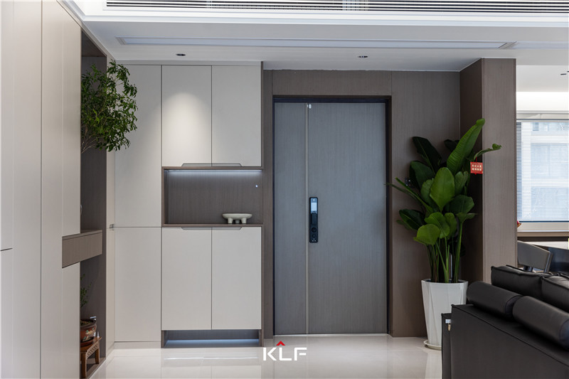 玄關(guān)中部及底部掏空,以人體工程學(xué)設(shè)計(jì)保障出入便捷度。茶白與檀木紋色彩拼接,射燈與輔助燈點(diǎn)綴局部,一整個(gè)實(shí)用住了。