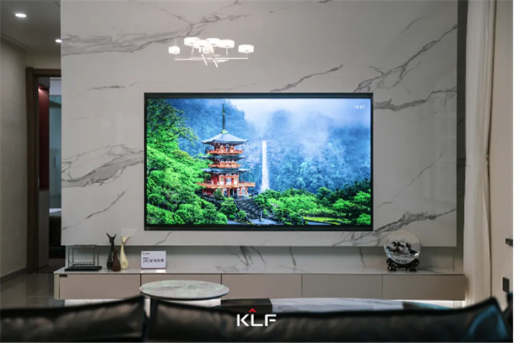 天然大理石背景墻呈現(xiàn)出自然光澤,其高級質(zhì)感提高整個客廳的高端檔次;大理石的經(jīng)久耐用、歷久猶新,也傳遞著屋主的卓越品味。