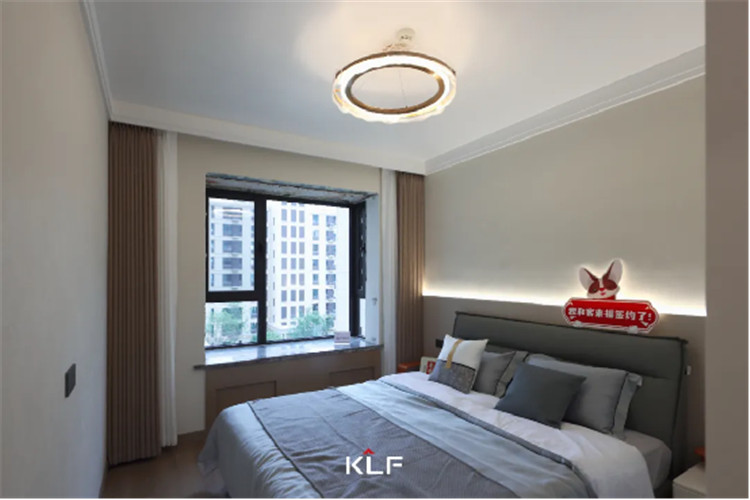 主臥一切以舒適主導(dǎo),清新淡雅的床頭背景墻營造出恬淡樸素的氛圍,見光不見燈的氛圍,讓空間又多了一份溫暖和舒適。
