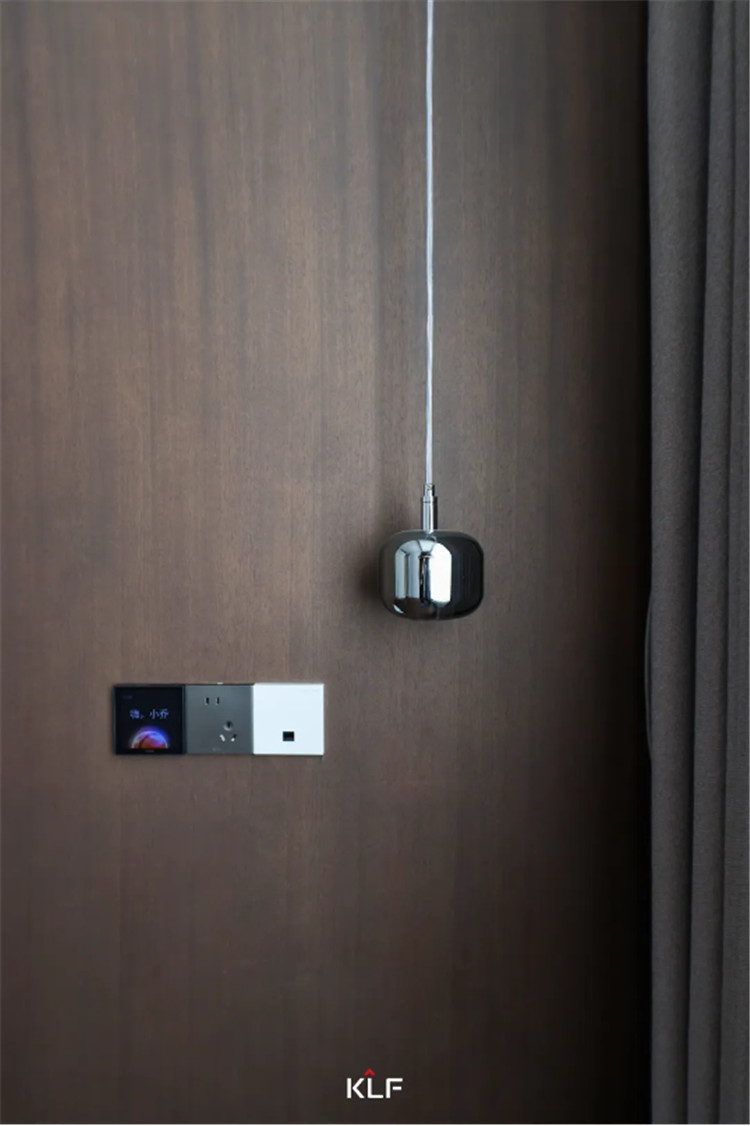 全屋以胡桃木、橡木、灰白為主色調,多元的材質運用進一步提升空間調性,融合內斂木色與粗獷石紋的視覺傳達,打造出深沉穩(wěn)重、態(tài)度鮮明的家居氣質。