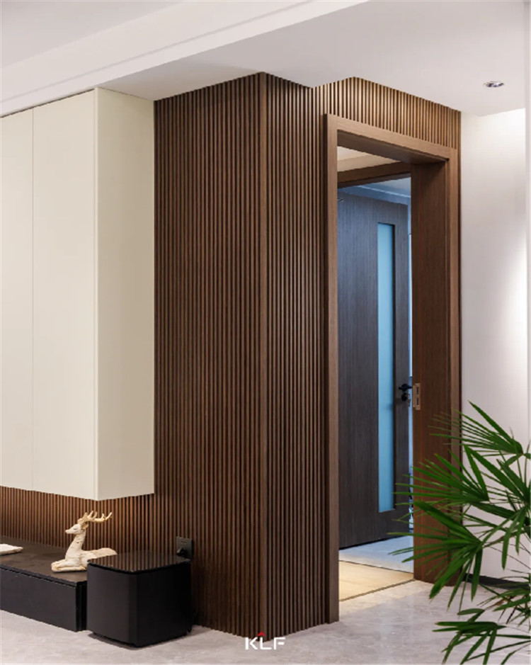木門則采用特調(diào)的烤漆調(diào)色,與納科榆木的墻、柜形成呼應(yīng),全屋設(shè)計渾然天成,美在不言之中。