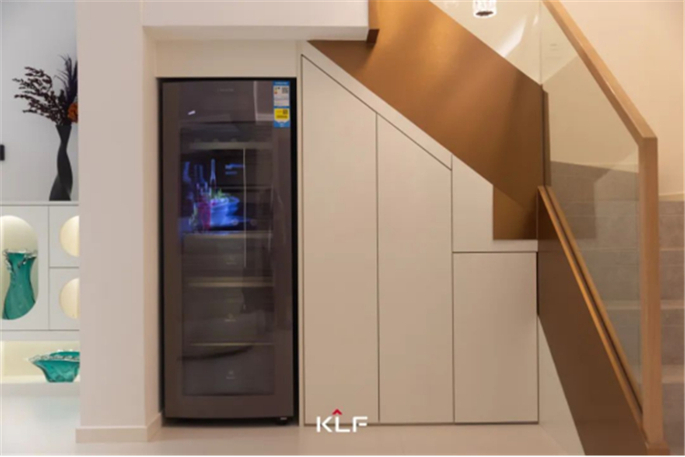 樓梯下方的空間,也被巧妙改造成超大容量的收納柜,滿足一家人多樣化的儲物需求,讓樓梯在承擔(dān)垂直交通功能的同時,變身成為實用的儲物高手。