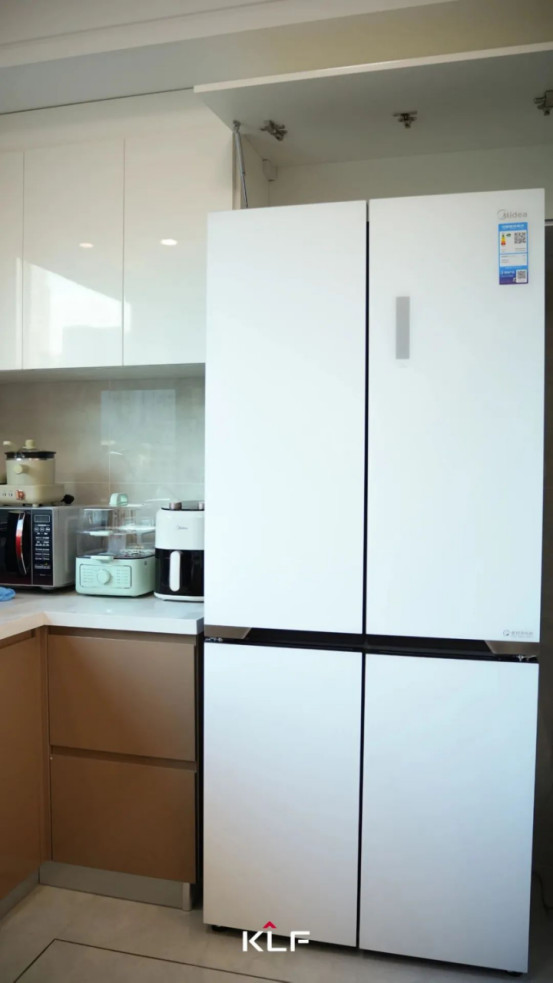 廚房L型櫥柜布局緊湊且功能性強,黃金三角區(qū)讓洗切炒動線行云流水。高低錯落的吊柜與地柜構(gòu)成垂直收納矩陣,儲物功能強大,臺面整潔。