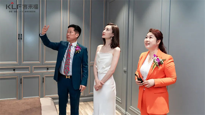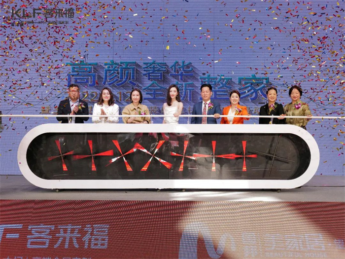 在舞臺開場之前,一場“明星逛店”直播給活動帶來了第一個小高潮??蛠砀<揖庸煞萦邢薰径麻L尹其宏先生、總裁魏金華女士帶品牌代言人王麗坤女士走進展館,講解、分享客來福優(yōu)秀產(chǎn)品系列,期間直播間的家人朋友們也跟隨著腳步身臨其境,一起領(lǐng)略了這場家居盛宴。