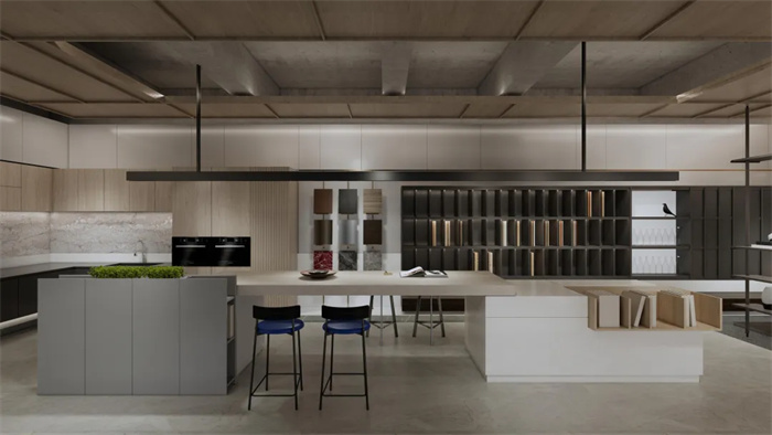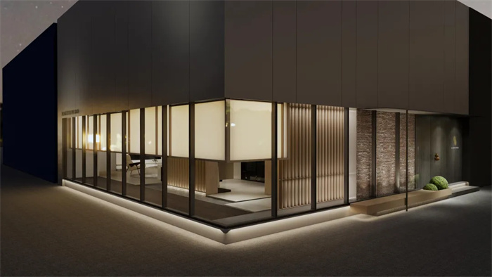 在即將到來的建博會(huì)上,革物為大家?guī)淼氖侨谌敫嗳宋那閼押蜁r(shí)代精神的東方系列作品。本次展廳共分為四個(gè)區(qū)域:洽談區(qū)、木皮產(chǎn)品區(qū)、極簡(jiǎn)產(chǎn)品區(qū)、前廳接待區(qū),在展廳中融入拱形墻、外擴(kuò)圓弧、格柵設(shè)計(jì),將中式元素融入景觀中,形成相互交融,彼此和諧共生的綠色新景。