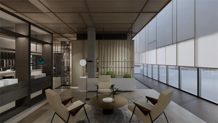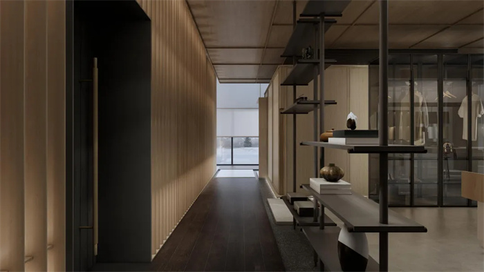 空間中看不見的氣韻是設(shè)計(jì)追問的本質(zhì)所在,東方意境的抽象文化,用線條和色彩的形式呼應(yīng)空間,建立秩序感與層次性,展開現(xiàn)代簡(jiǎn)奢品質(zhì)生活畫卷中詩(shī)意棲居。
