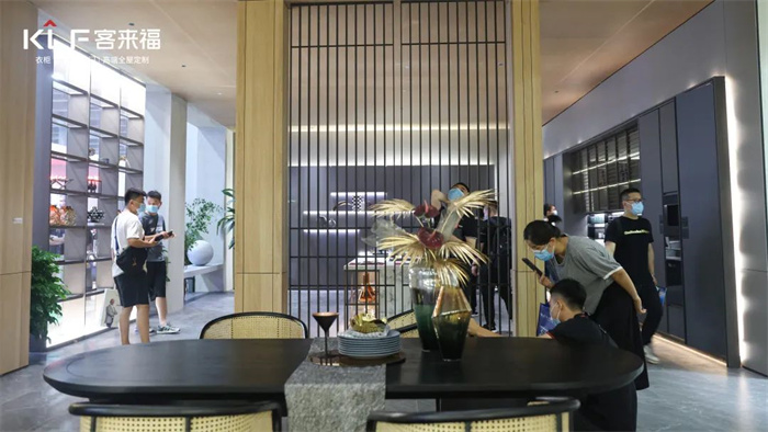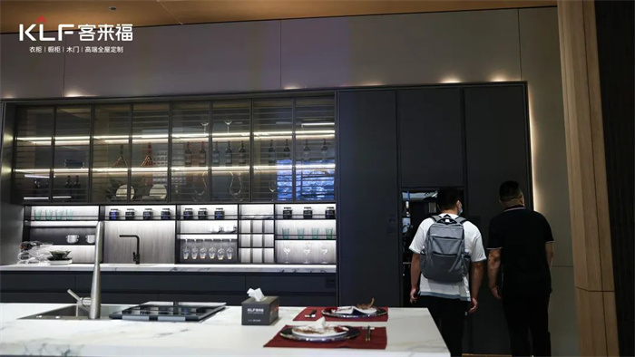 在布局方面,展廳分為廚房、餐廳、客廳、臥室等八大空間,以低飽和度的紅色為基調(diào),實木和金屬相互映襯,同時堅持產(chǎn)品設(shè)計在造型、線條、質(zhì)感上的干凈利落和客來福獨特的烤漆工藝,以低調(diào)細膩的環(huán)保材質(zhì)、色彩體現(xiàn)出本身雋永的美麗,客來福更懂得中國人們生活方式的當代設(shè)計,演繹極簡、輕奢國潮的家居生活。