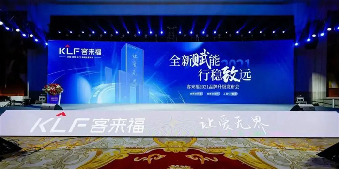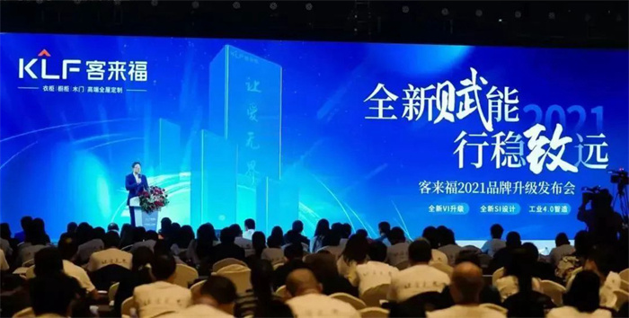 2021年10月11日客來福“全新賦能,行穩(wěn)致遠(yuǎn)”品牌升級發(fā)布會在合肥白金漢爵大酒店成功舉行。對外發(fā)布全新的品牌體系,正式啟用工業(yè)4.0和VI識別系統(tǒng),開啟品牌全新發(fā)展的新里程。