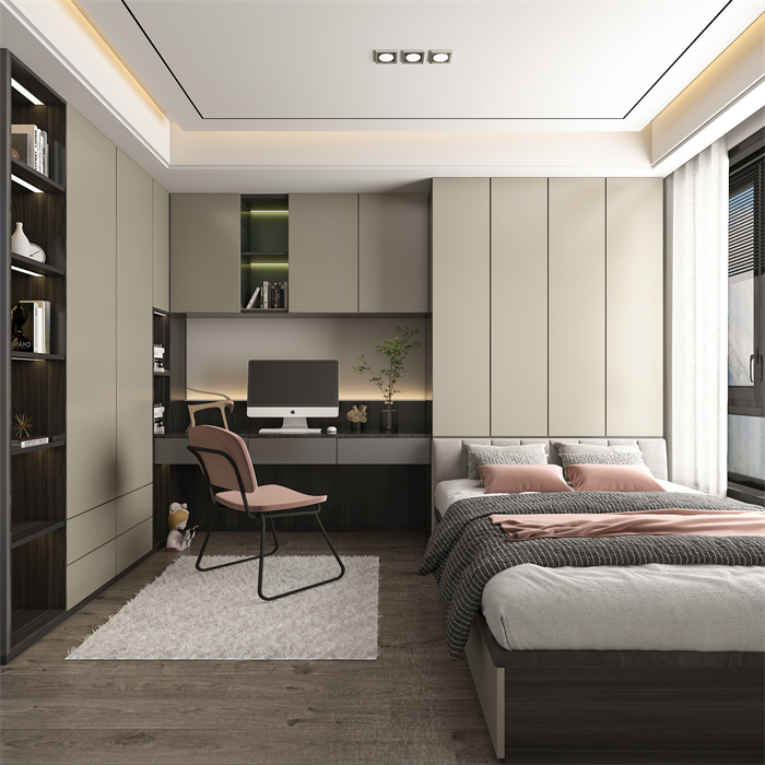 像電視柜的整體抬高設計,讓業(yè)主在家即能舒適看劇;無把手柜門設計,簡潔利落,增強視覺美感;衣柜的升降拉桿設計,滿足家庭不同成員的需求。