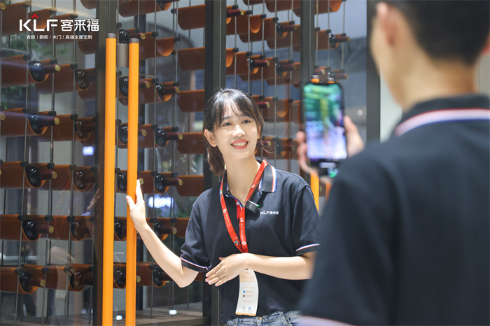 展會期間現(xiàn)場客商親身體驗(yàn)了客來?!じ镂锂a(chǎn)品的精妙絕倫,對于無法來到現(xiàn)場的家人們,可以通過抖音線上客來福全屋定制官方賬號觀看實(shí)時(shí)直播,觀看客來福專業(yè)家裝設(shè)計(jì)師和總監(jiān)為您介紹產(chǎn)品詳情和細(xì)節(jié)。