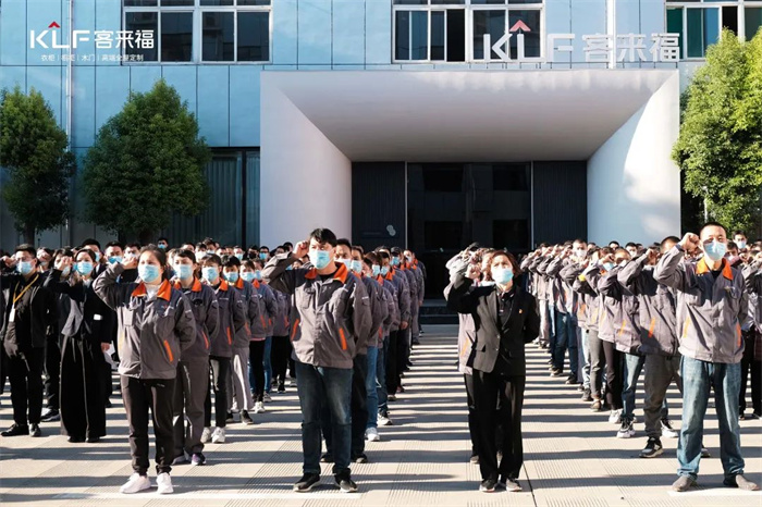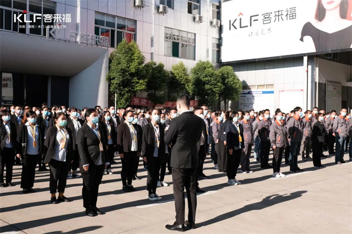 首先進行的是升國旗奏國歌儀式,客來福家居作為民族企業(yè),始終堅決地將愛國擁黨作為企業(yè)發(fā)展的首位。在飄揚的旗幟下,客來福全員進行企業(yè)價值觀宣讀,客來福家人們將通過不懈努力和精進合作,實現(xiàn)品牌發(fā)展的美好愿景。