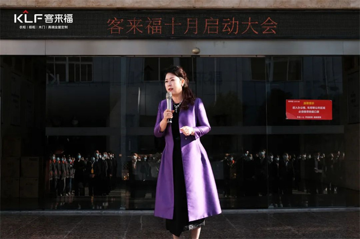 在動員大會上,客來福家居總裁魏金華女士進行了動員致辭。魏總裁說道:發(fā)揮死磕到底的工匠精神是每個客來福人的信條,要將這種精神深刻地貫徹在平時的工作之中,從細微之處就要端正態(tài)度,才能做好本職工作,實現(xiàn)個人與團隊的共贏。