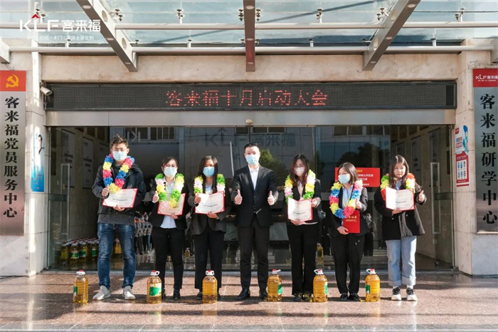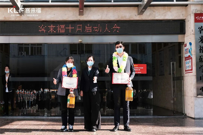 在客來福的平臺上,有付出,就一定會有收獲。本次啟動大會上還對九月取得優(yōu)秀成績的員工們進行了表彰,向其頒發(fā)榮譽證書以及豐厚的禮品、獎金等。