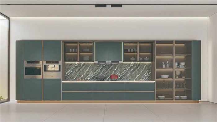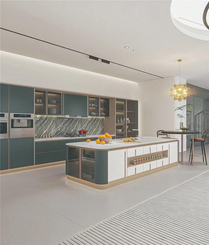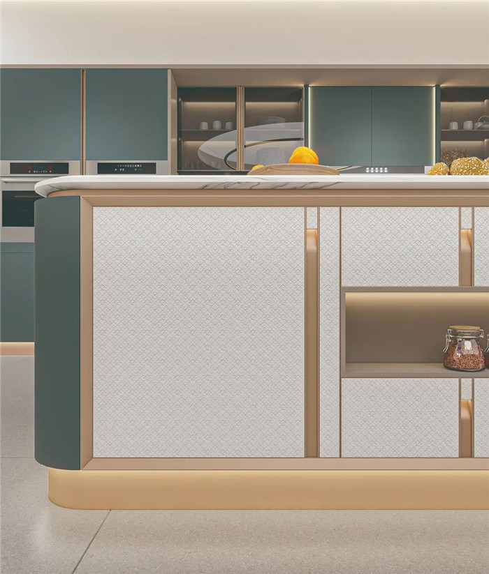 采用圓弧包邊設(shè)計(jì),將圓弧貫穿整套產(chǎn)品,勾勒溫潤柔和質(zhì)感。免拉手燈柱和鋁合金燈帶,盡顯高貴與優(yōu)雅。既富有意式侘寂的設(shè)計(jì)風(fēng)尚,也是對今年高定流行元素的創(chuàng)新性結(jié)合。