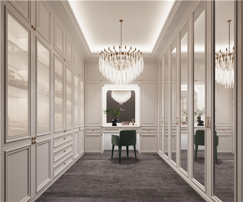 選用燈具、金屬壁掛、地毯等多種配飾,不同配飾共同構(gòu)成空間的多重表達(dá),裝飾選材也非常豐富,整體營(yíng)造出古典與高貴的氛圍。