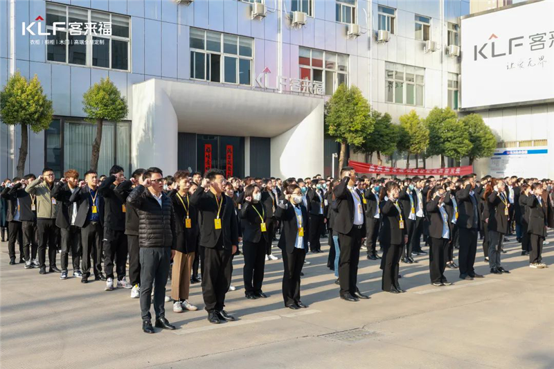 伴隨著“有黨有國才有家”的開場,啟動大會第一項(xiàng):升國旗奏國歌儀式,隨著國旗緩緩升起,客來福全員行注目禮,并在國歌的伴奏下,心中堅(jiān)定信念、緊跟黨走,牢記客來福初心與使命,為祖國和人民奮斗。
