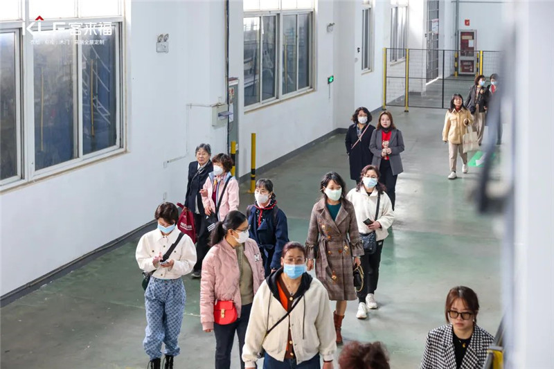 參觀的第一站,領(lǐng)導(dǎo)一行在魏總的帶領(lǐng)下來到了客來福家居4.0智能化生產(chǎn)車間。參觀過程中,魏總向大家講述了客來福家居4.0智能化體系的深度布局,領(lǐng)導(dǎo)們與社員們實(shí)看實(shí)感后他們紛紛表示智能化、數(shù)字化將會(huì)是未來企業(yè)發(fā)展的重中之重,并對(duì)客來福家居的產(chǎn)業(yè)模式表示了贊同與認(rèn)可。