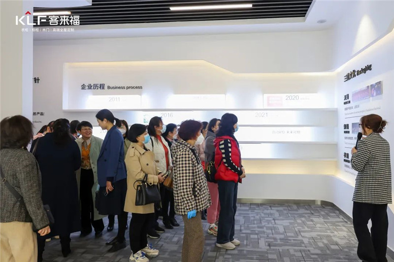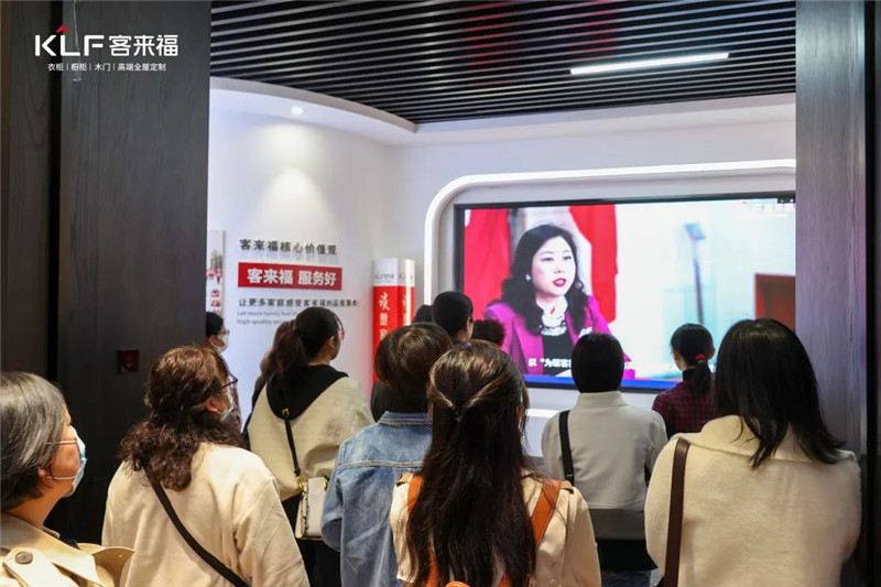 在魏總的帶領(lǐng)之下,來訪的領(lǐng)導(dǎo)與社員們來到了展廳內(nèi)的黨建文化處,在這里通過講解與視頻播放相結(jié)合的形式加深了大家對(duì)客來福家居「12358黨建文化」的了解。20年來,客來福家居一直以幸福為核心制定黨建文化工作綱領(lǐng),積極推進(jìn)各項(xiàng)文化建設(shè),推動(dòng)黨建工作與企業(yè)發(fā)展的融合互促,為中國(guó)特色社會(huì)主義事業(yè)貢獻(xiàn)力量。