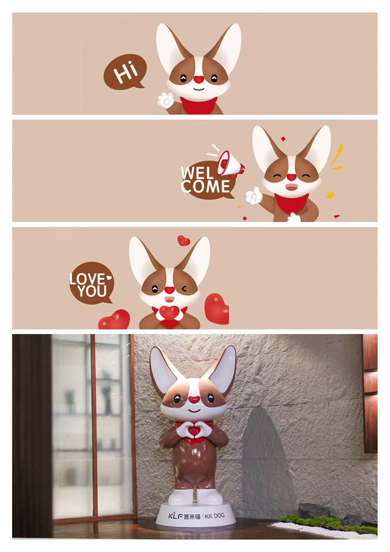 它的名字取自“KLF”的首字母”K“,形象中愛心、^等元素添加設(shè)計(jì)靈感來源于客來福“締造幸福家居生活,讓愛無界”的使命,傳遞出客來?!靶腋!钡奈幕砟?。