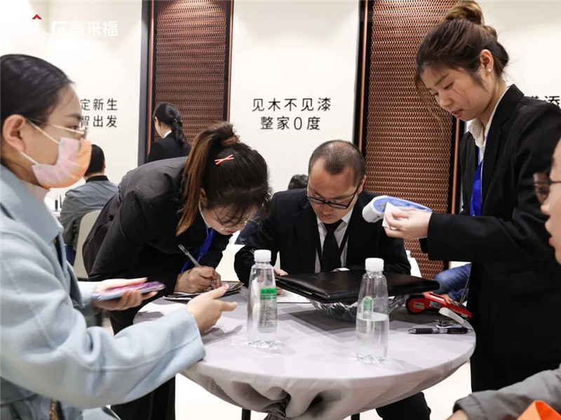 客來福工作人員為有加盟意向者介紹了客來?!じ镂锏募用苏?,高定的潮流趨勢(shì)讓他們看見了共贏的機(jī)會(huì),共識(shí)的達(dá)成,促進(jìn)客來?!じ镂锲放迫瞬抨?duì)伍的強(qiáng)大。