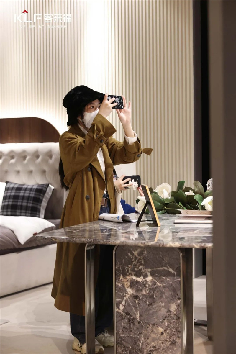 除了傳統(tǒng)形式,居美·中華衣柜網(wǎng)還特別邀請尹董與記者互動逛展,尹董帶領(lǐng)記者在展館內(nèi)感受新品品質(zhì),進(jìn)一步解析客來?!じ镂铩ず材拿缹W(xué)設(shè)計(jì)理念。