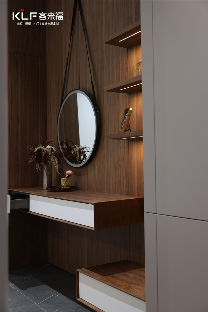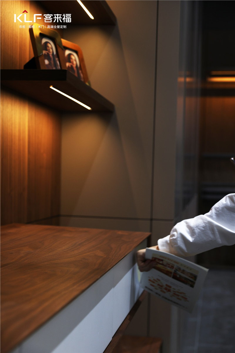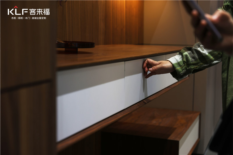 水漆工藝的運用,使「臻·至」系列具有健康、環(huán)保的特性,從內(nèi)而外散發(fā)出高雅氣質(zhì),特有的“見木不見漆”效果在部分空間中帶來自然原生態(tài)的舒適感,折射出客來福一直踐行的健康整家定制理念。