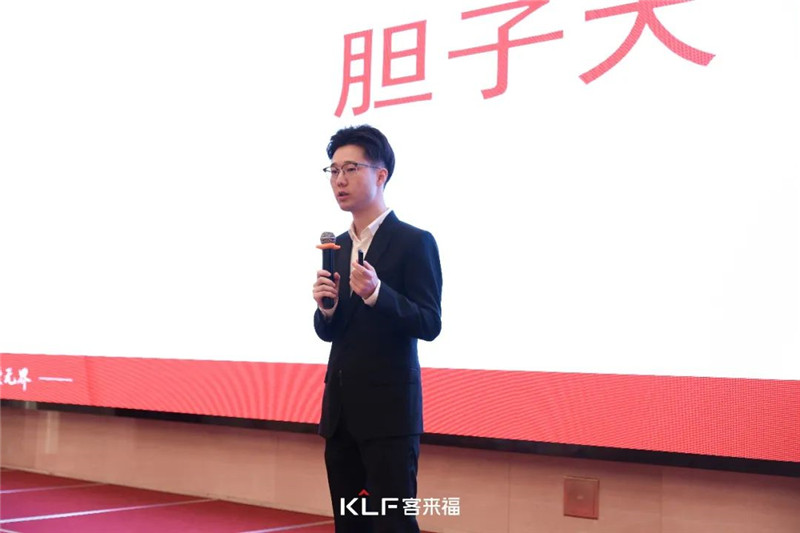 2023年5月17日,客來福核心經(jīng)銷商大會(huì)啟動(dòng)第三天,以“品牌塑造”為主題的大會(huì)于8時(shí)40分正式拉開帷幕,客來福首席品牌官尹邵杰先生做品牌解讀宣講。