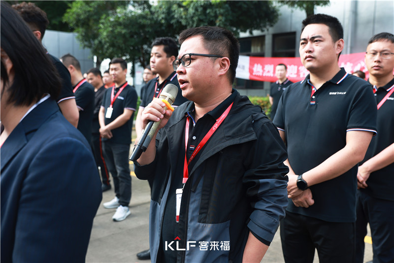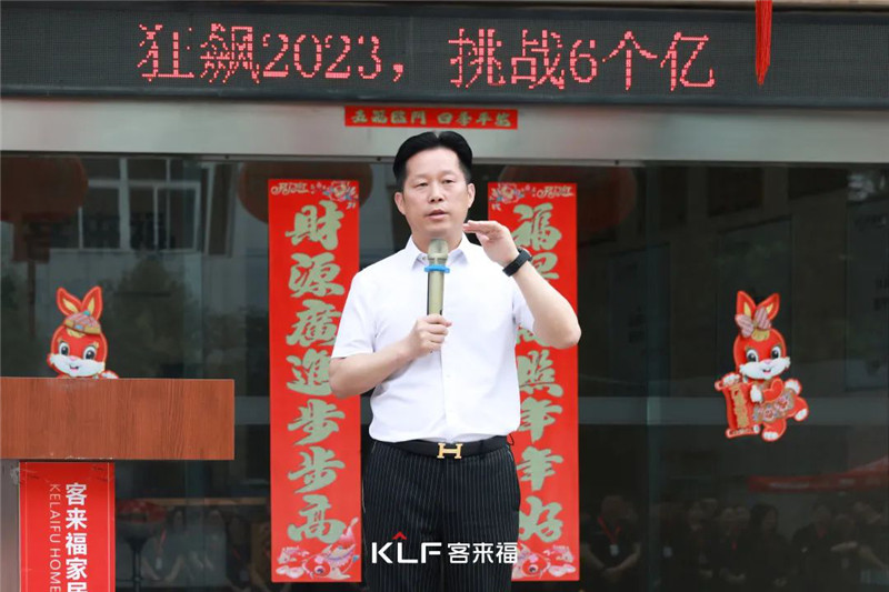 隨后客來福家居總裁魏金華作動員講話,強調隨著訂單的增長,產品質量也需嚴格把控,嚴格落實生產十二字方針。
