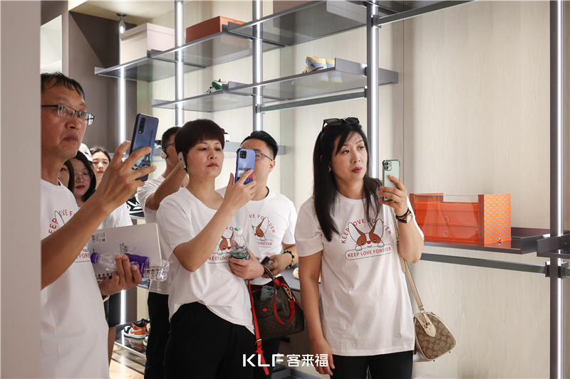 隨后,一行人走進(jìn)客來?!じ镂镎箯d及2023年新落地的13代展廳,通過親看及工作人員的講解,了解了客來?,F(xiàn)有的產(chǎn)品體系及高定產(chǎn)品的研發(fā)力,肉眼可見的質(zhì)感下是客來福二十年的家居初心。