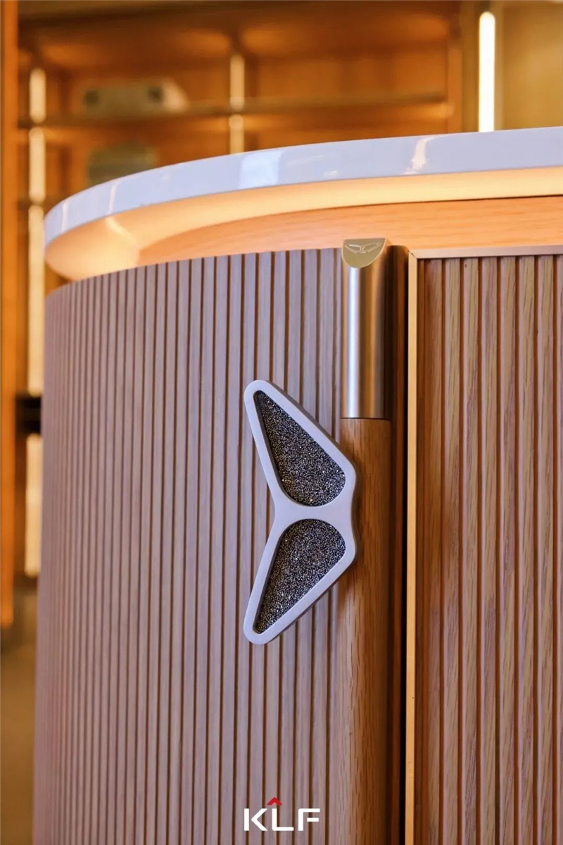 對于新奢產(chǎn)品,客來福在品質(zhì)標(biāo)準(zhǔn)上也有著精細(xì)的打算。首先,水漆工藝以通透的漆與自然的木之間的碰撞,實現(xiàn)門墻柜一體的美感;以綠色環(huán)保安全的水漆工藝開拓賽道,賦予產(chǎn)品質(zhì)感和格調(diào)。其次,高定產(chǎn)品需要搭配高定選材,不管是施華洛世奇水晶、馬牌皮革還是巴西黑檀等,產(chǎn)品細(xì)節(jié)和整體搭配都經(jīng)過設(shè)計師的細(xì)致考量。
