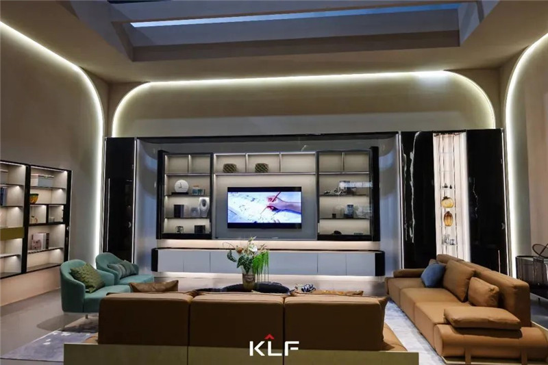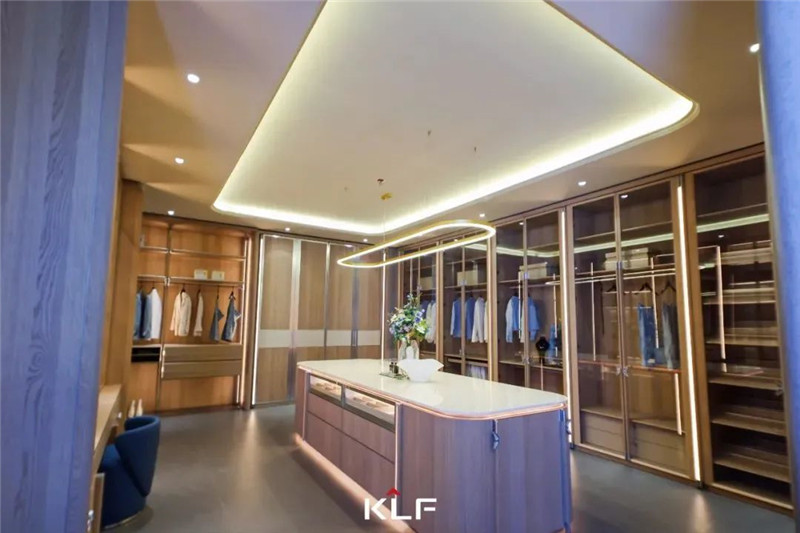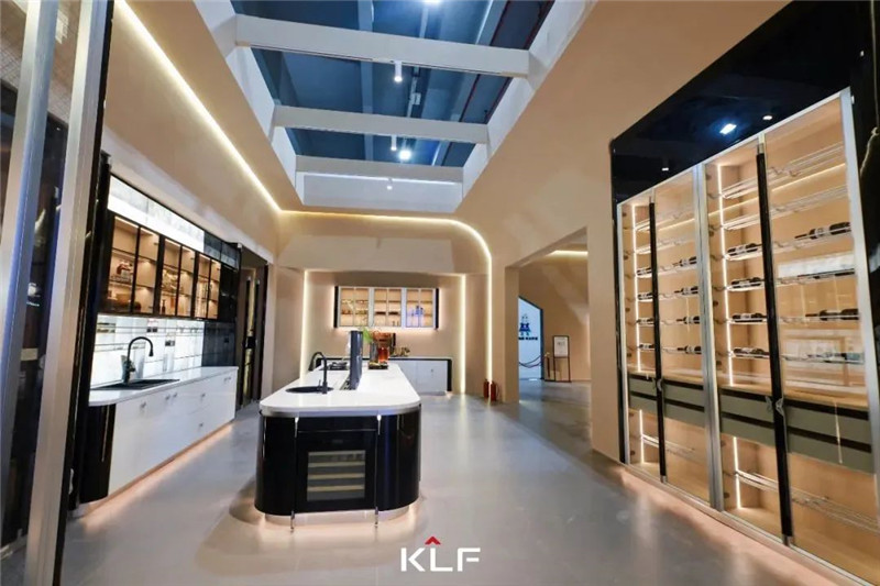 熟悉行業(yè)的人也許會注意到,每一屆的建博會,客來福都會有充滿亮點的產(chǎn)品展出。而今年客來福帶來的,涵蓋客廳、餐廚、茶室、衣帽間、臥室等不同生活場景的新品——“蝶變”系列更是充滿創(chuàng)意與驚喜。為了強化用戶認(rèn)知,蝶變系列將品牌基因融入產(chǎn)品,在外形設(shè)計上提取客來福標(biāo)志KLF中的“K”,正反雙寫得到蝴蝶的翅膀造型。蝴蝶元素成為客來福具有差異化和個性化的一個表達符號,也被大量運用到產(chǎn)品的拉手、皮革雕刻門板等部件上,以對稱之美把大自然和家居結(jié)合起來,讓品牌IP成為用戶記憶點、產(chǎn)品賣點;而蝴蝶符號具有的融合與改變的內(nèi)涵,也成為客來福打造高定產(chǎn)品的底氣和信心。