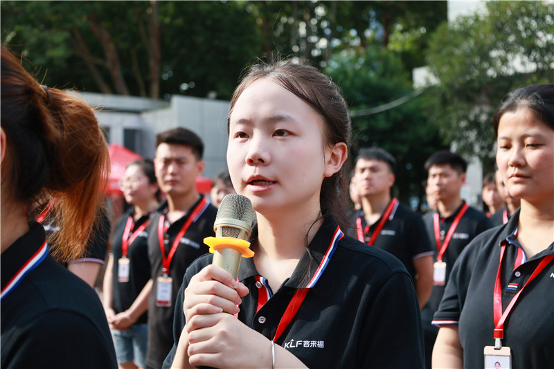 首先進(jìn)行莊嚴(yán)的升國旗奏國歌儀式,伴隨著國歌,國旗緩緩升起,客來福全體員工行注目禮,有國才有家,國是千萬家。隨后全體員工宣讀企業(yè)文化,在整齊、響亮的宣誓中,鄭重拉開啟動(dòng)大會(huì)序幕。
