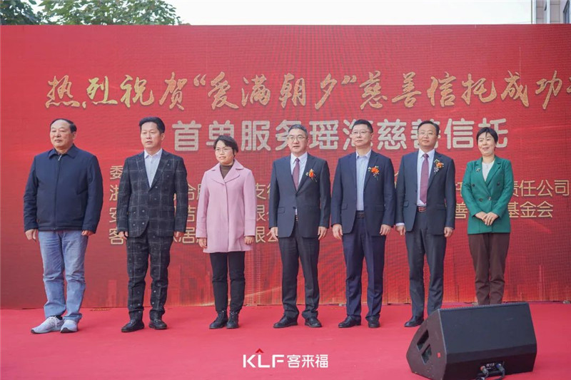 在各領(lǐng)導(dǎo)的精彩致辭后,進(jìn)行了信托設(shè)立儀式。 本次由浙商銀行瑤海支行發(fā)起,聯(lián)合客來(lái)福家居股份有限公司、安徽衣貝潔實(shí)業(yè)有限公司共同作為委托人,安徽國(guó)元信托有限責(zé)任公司及安徽省愛(ài)心慈善救助基金會(huì)作為受托人,在瑤海區(qū)民政局見(jiàn)證下,設(shè)立 2023“浙銀向善 瑤海同行 愛(ài)滿朝夕”慈善信托,開(kāi)展瑤海區(qū)的尊老愛(ài)老、扶幼助幼等慈善活動(dòng),助力中國(guó)公益事業(yè)發(fā)展。隨后七家聯(lián)合單位領(lǐng)導(dǎo)上臺(tái),舉行慈善信托設(shè)立儀式。