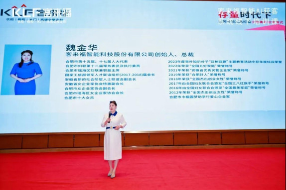 課程伊始,客來福總裁魏金華女士上臺發(fā)表致辭。魏總裁指出,面對行業(yè)內(nèi)卷嚴(yán)重,價格戰(zhàn)橫行的市場環(huán)境,掌握全鏈條知識與實戰(zhàn)技能對于提升品牌競爭力起關(guān)鍵作用。她鼓勵學(xué)員們以空杯心態(tài)汲取新知,并期待大家能夠?qū)W以致用,積極擁抱新媒體平臺和AI技術(shù),以多樣的渠道建設(shè)賦能終端搶占市場份額。