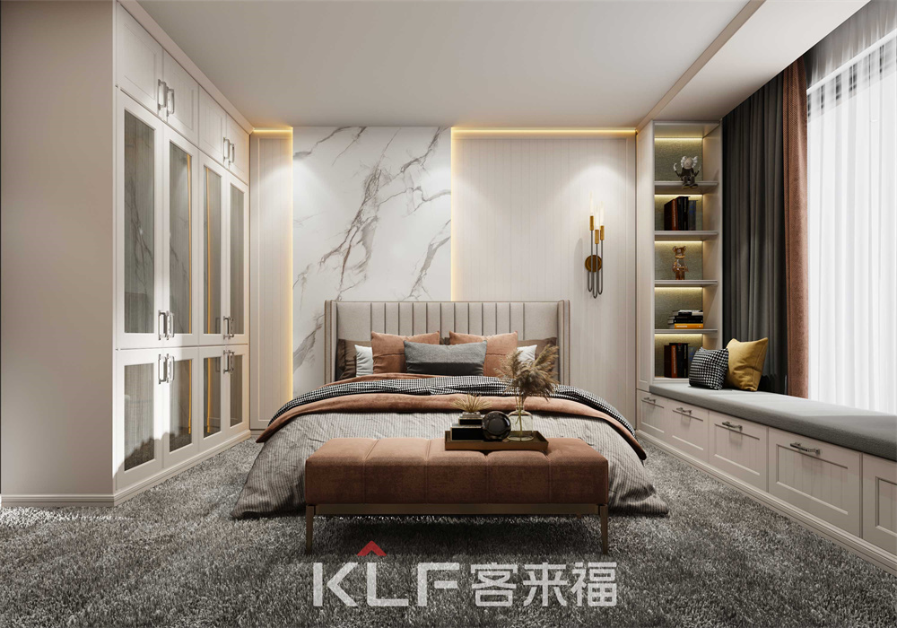 臥室的柵格背景墻和模壓護墻,做出了高定混油的產(chǎn)品效果,超晶板和巖板等超現(xiàn)代感的元素的融入,更是將簡歐這一經(jīng)典風(fēng)格產(chǎn)品做了顛覆,更符合當(dāng)下消費人群讓客戶生活更加自然。