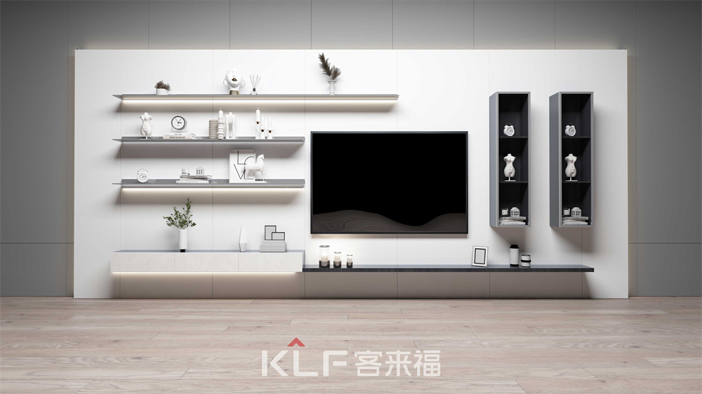 拉深構造增加空間距離,以灰、白、黑三色為基調,簡約風格的基礎上更顯現代時尚輕奢。嵌入式電視背景墻設計,以黑為底打造沉穩(wěn)大氣的新風韻。